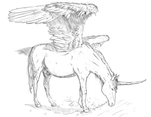 Это легендарное животное, описанное еще с древних времен. Единственное отличие от "обычного" - это наличие двух огромных крыльев на спине. Выглядит как лошадь с рогом впереди. Существуют единороги разных цветов. В некоторых источниках есть информация, что его рог обладает способностью делать отравленную воду пригодной для питья и исцелять. Встречаются крайне редко, обладают довольно пугливым характером.