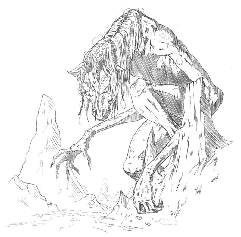 Опасное магическое создание. Выглядит как высокое костяное гуманоидное существо с головой и копытами лошади и непропорционально длинными конечностями до такой степени, что его колени при приседании оказываются над головой. Некоторые утверждают, что он представляет собой превращение абёфета, отправленного на землю из подвешенного состояния.
